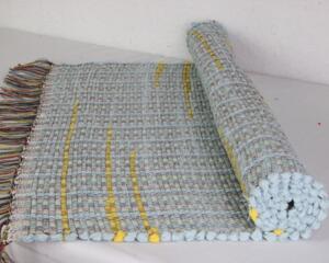 Light Blue w/ Yellow Accent Handwoven Rag Rug 25" x 42"