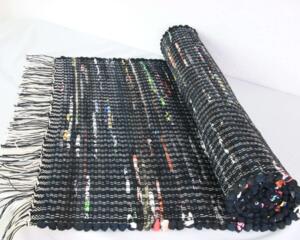 Black w/Colored Bits Handwoven Rag Rug 25" x 60"
