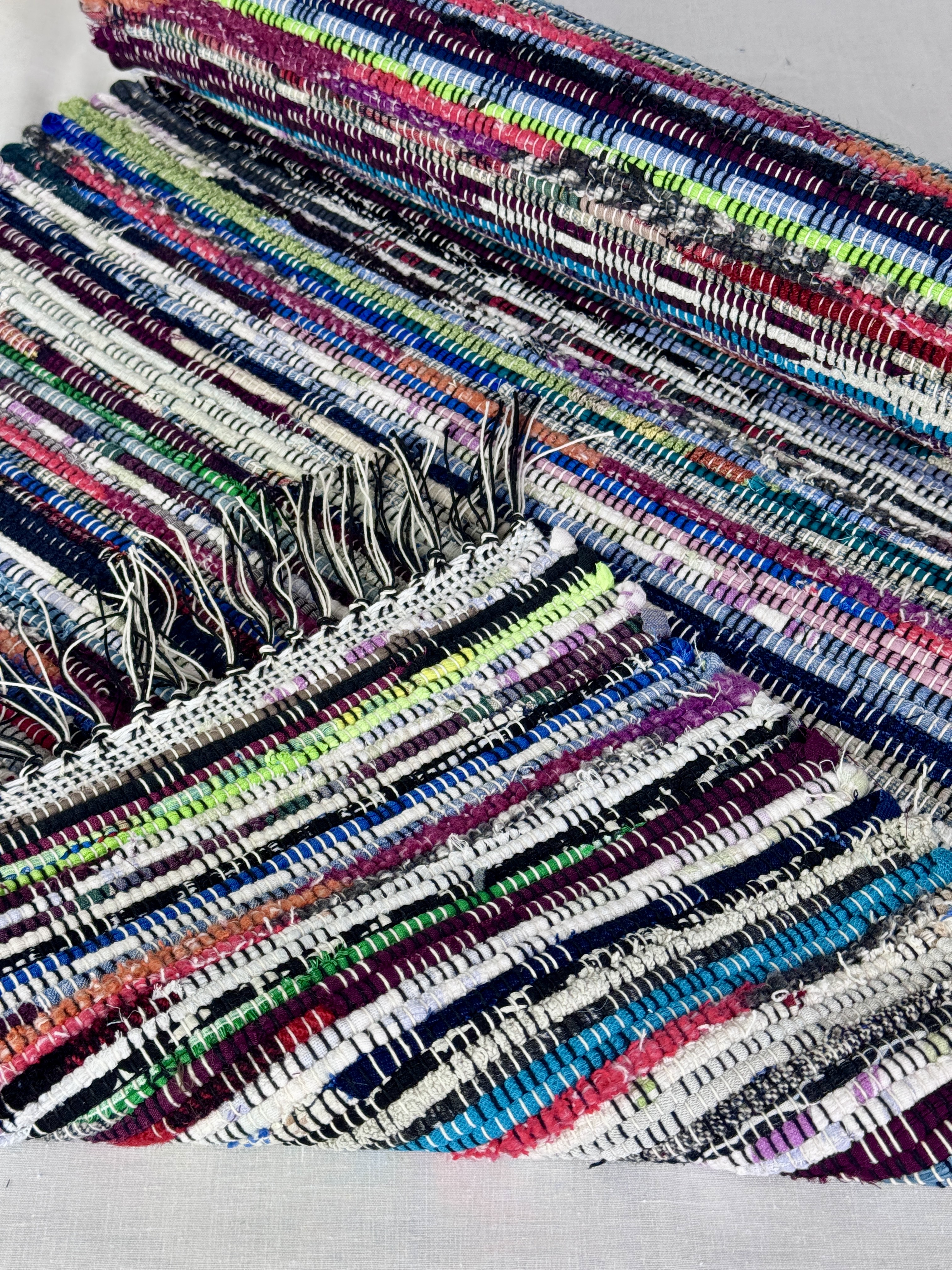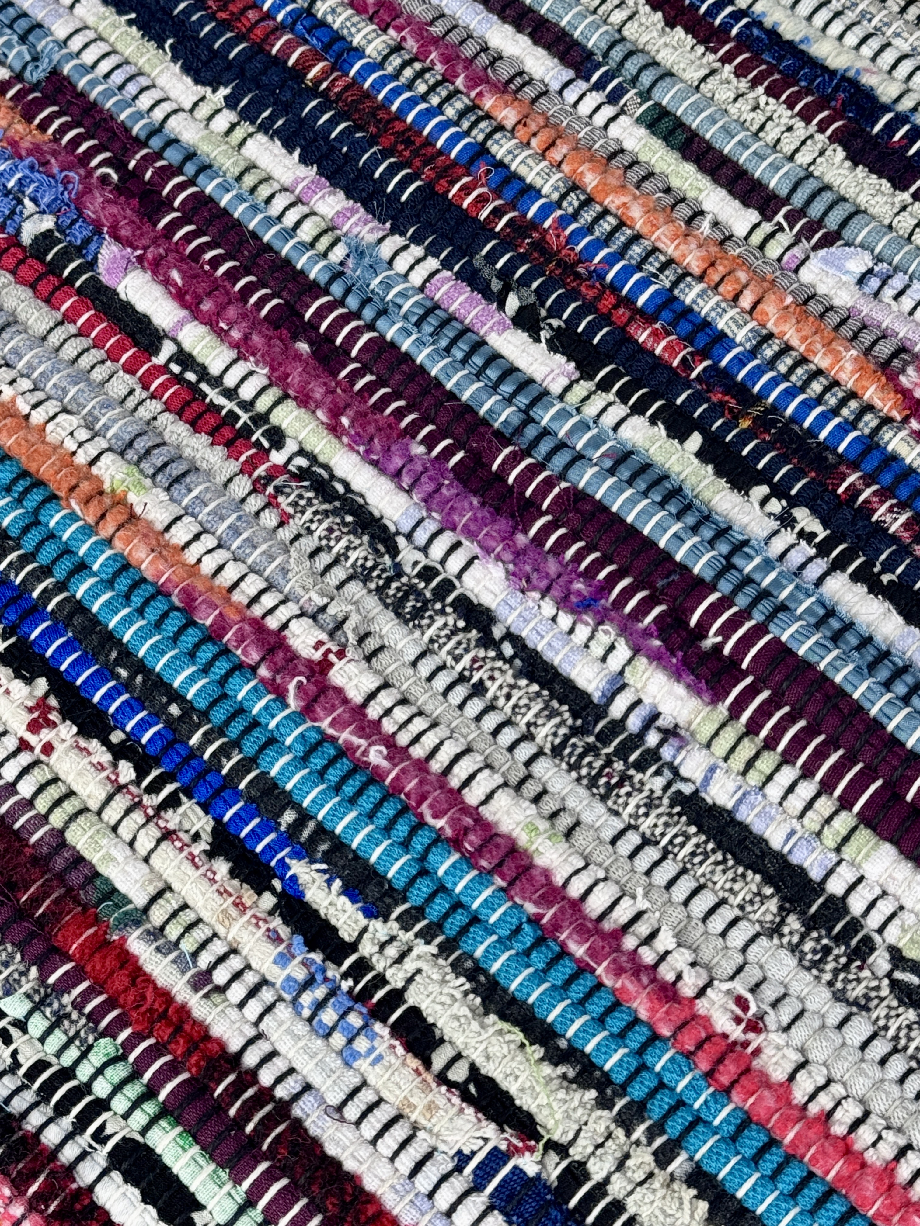 Discover the extraordinary world of recycling with my remarkable rugs. Crafted from once-beloved household textiles, these rugs breathe new life into forgotten fabrics. Each rug is a captivating tapestry of repurposed wonders, blending sweaters, socks, shirts, jeans, bedding, and beyond. Each rug lends its own uniqueness due to the blend of textures and colors.