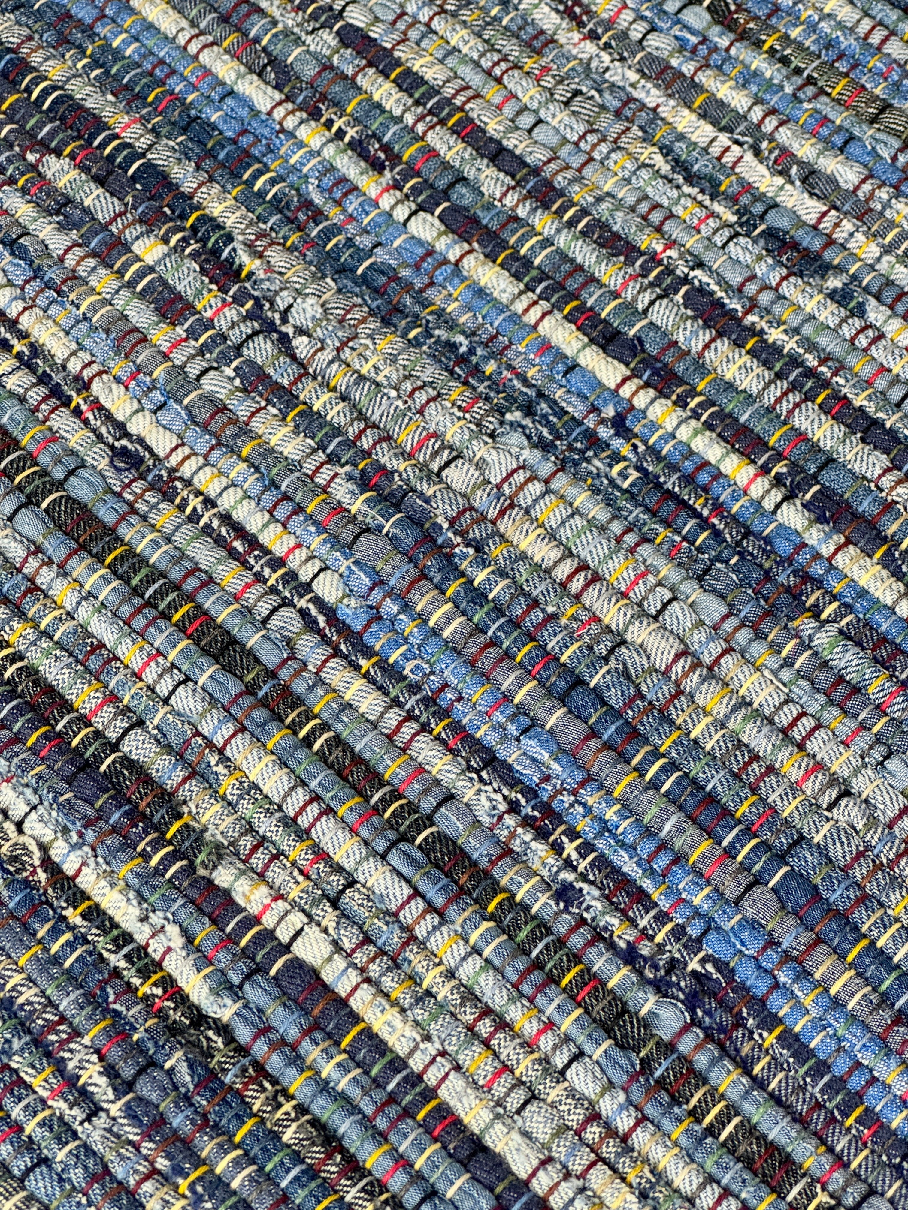 Discover the extraordinary world of recycling with my remarkable rugs. Crafted from once-beloved household textiles, these rugs breathe new life into forgotten fabrics. Each rug is a captivating tapestry of repurposed wonders, blending sweaters, socks, shirts, jeans, bedding, and beyond. Each rug lends its own uniqueness due to the blend of textures and colors.