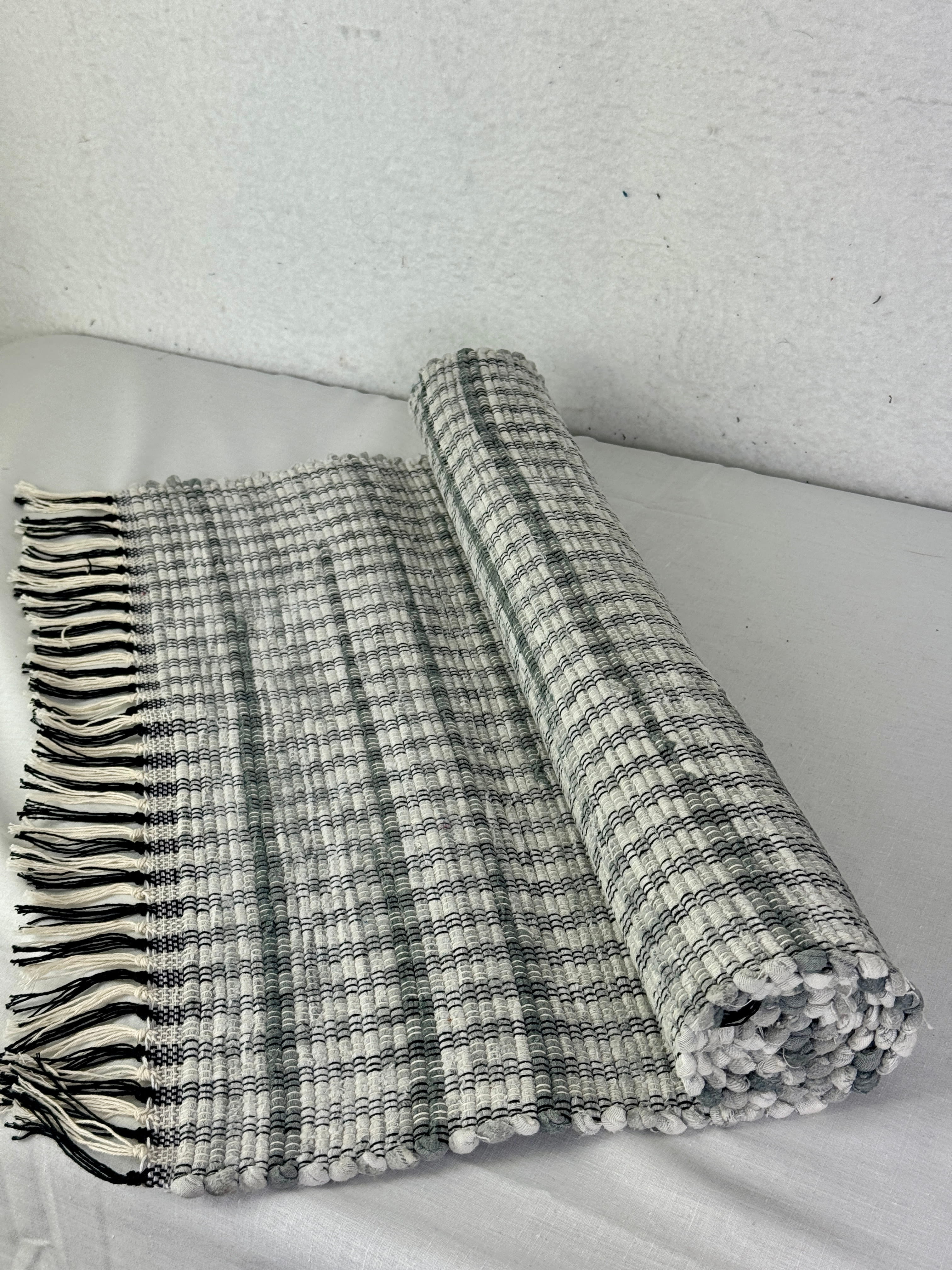 Every rug is meticulously handwoven on my trusty two-harness loom. I pour my passion and attention to detail into each weave, ensuring a quality that transcends trends. The impeccable straight edges and tightly woven strands are testaments to my dedication, while the variety of warp colors allows me to create pieces that complement any aesthetic, from modern minimalism to vintage charm.