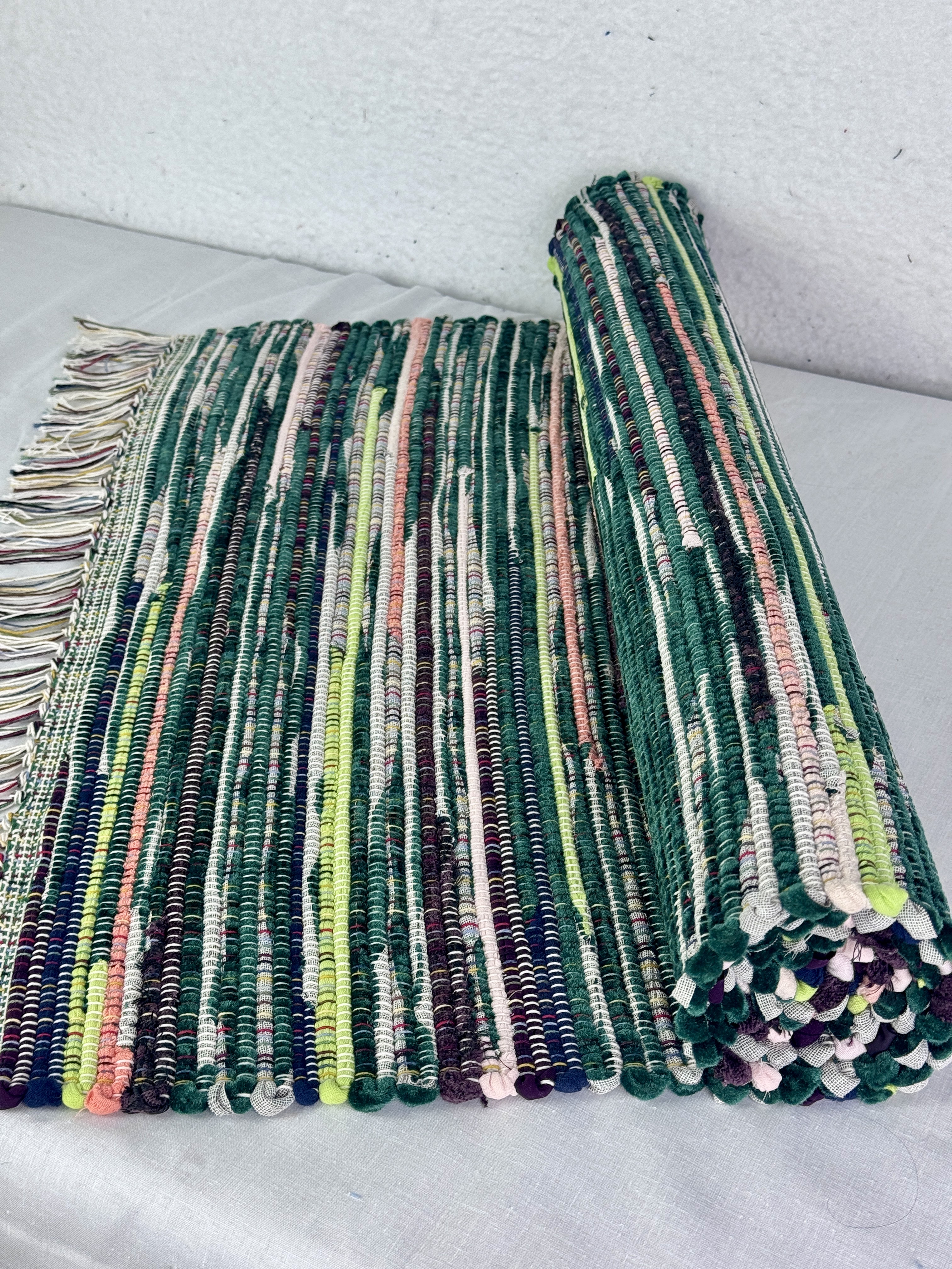 Green, Peach, Plum Handwoven Rag Rug 25" x 64"
