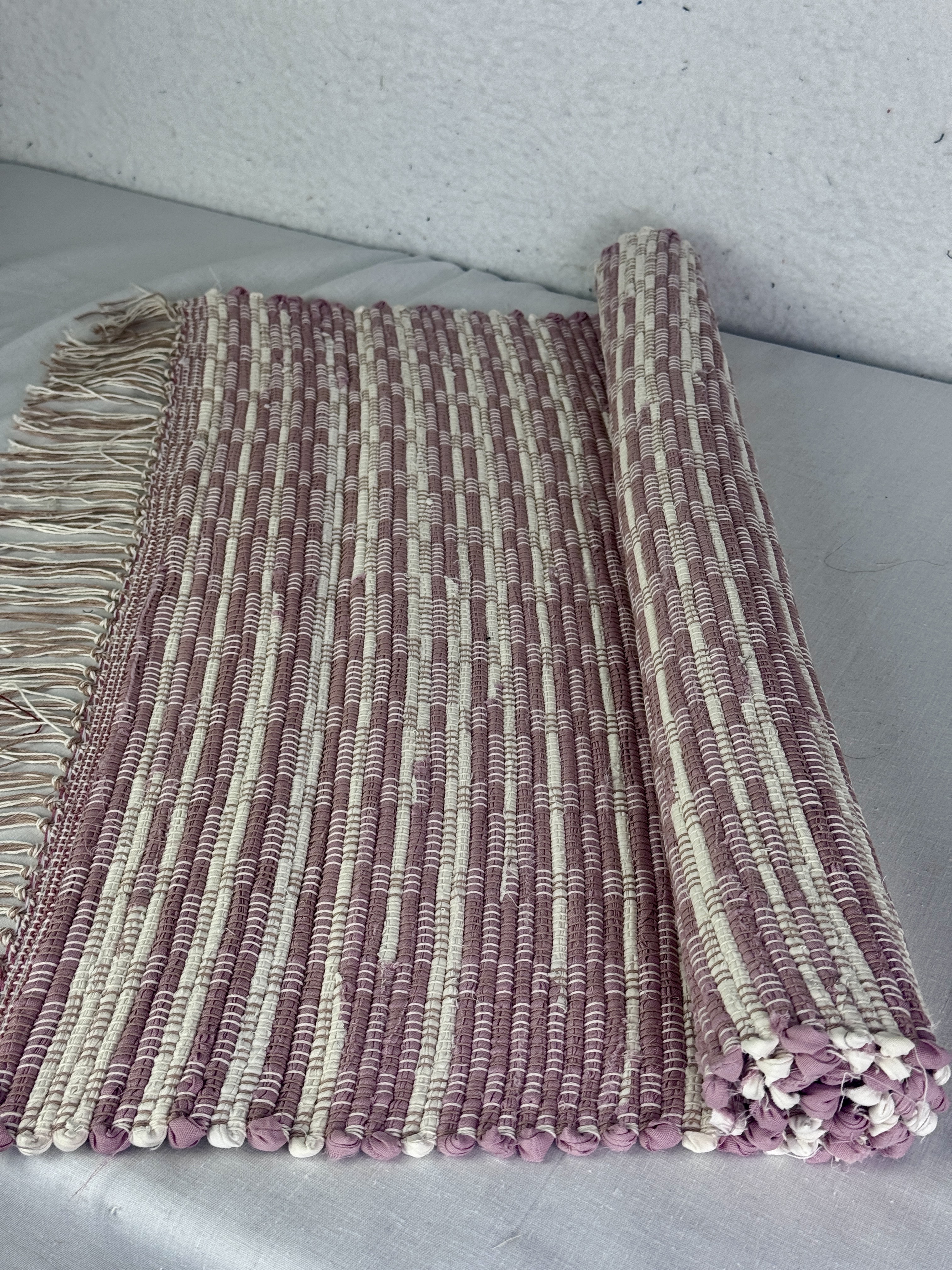 Mauve and White Handwoven Rag Rug 25" x 34"