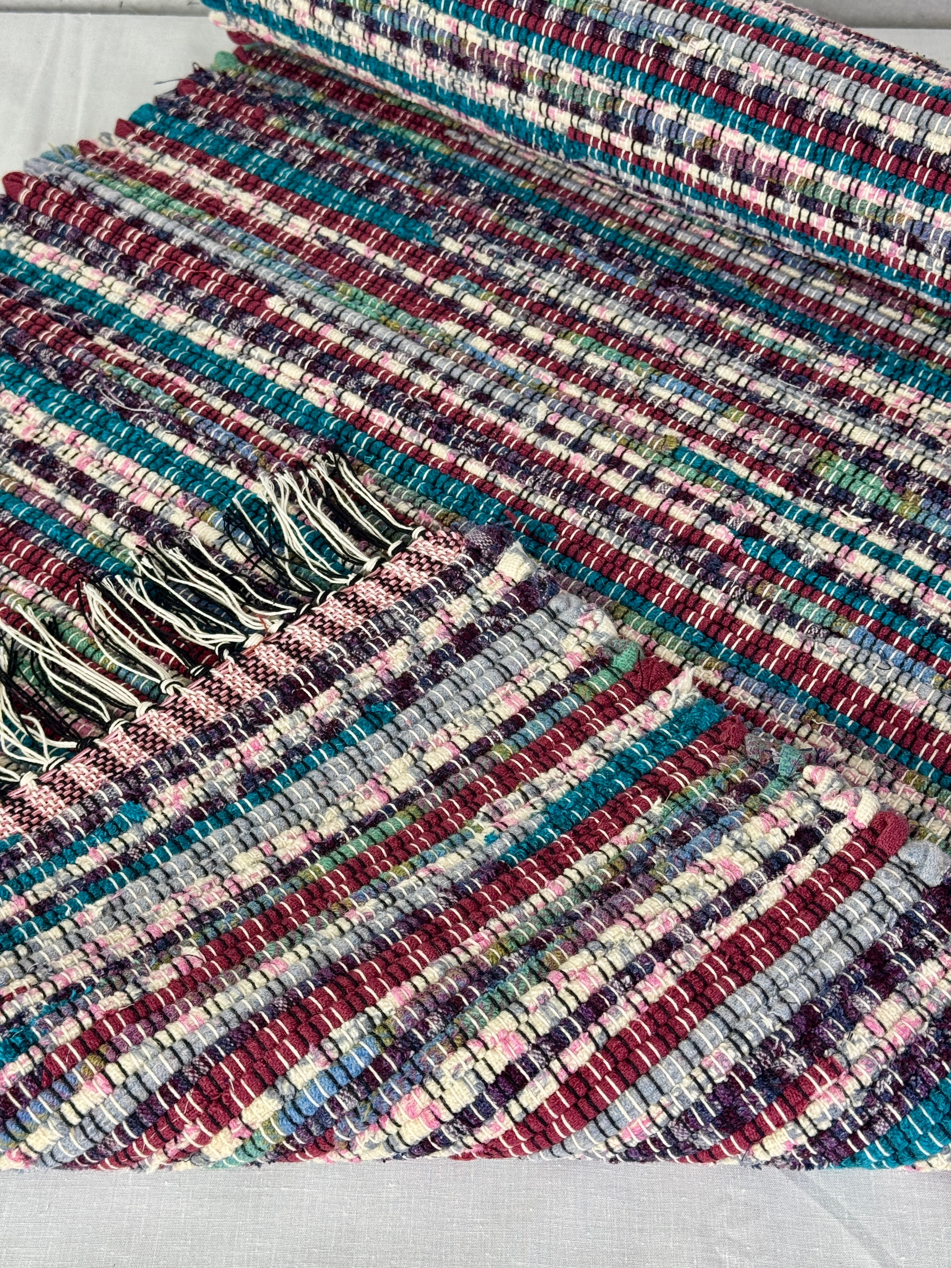 Every rug is meticulously handwoven on my trusty two-harness loom. I pour my passion and attention to detail into each weave, ensuring a quality that transcends trends. The impeccable straight edges and tightly woven strands are testaments to my dedication, while the variety of warp colors allows me to create pieces that complement any aesthetic, from modern minimalism to vintage charm.