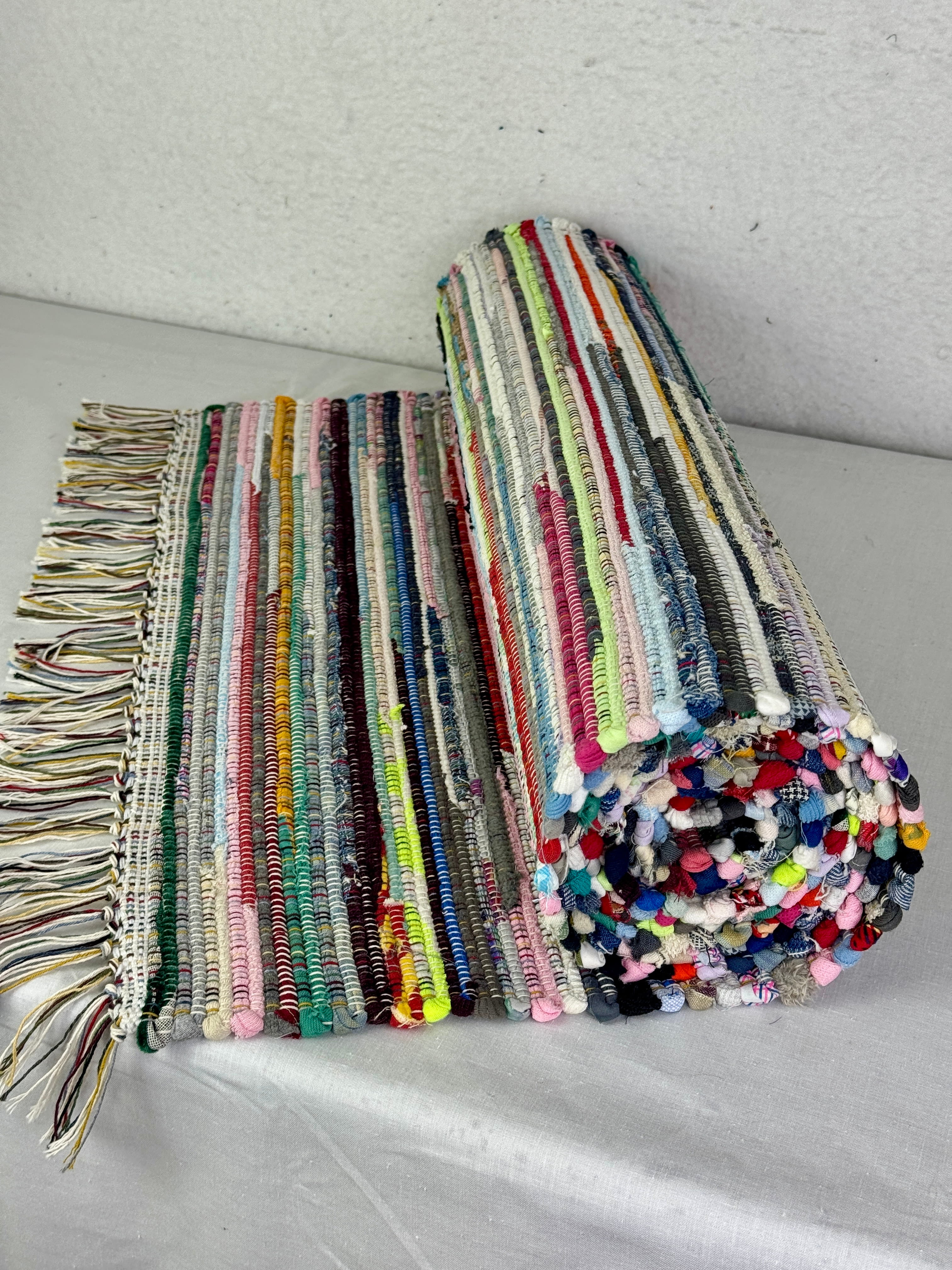 Discover the extraordinary world of recycling with my remarkable rugs. Crafted from once-beloved household textiles, these rugs breathe new life into forgotten fabrics. Each rug is a captivating tapestry of repurposed wonders, blending sweaters, socks, shirts, jeans, bedding, and beyond. Each rug lends its own uniqueness due to the blend of textures and colors.
