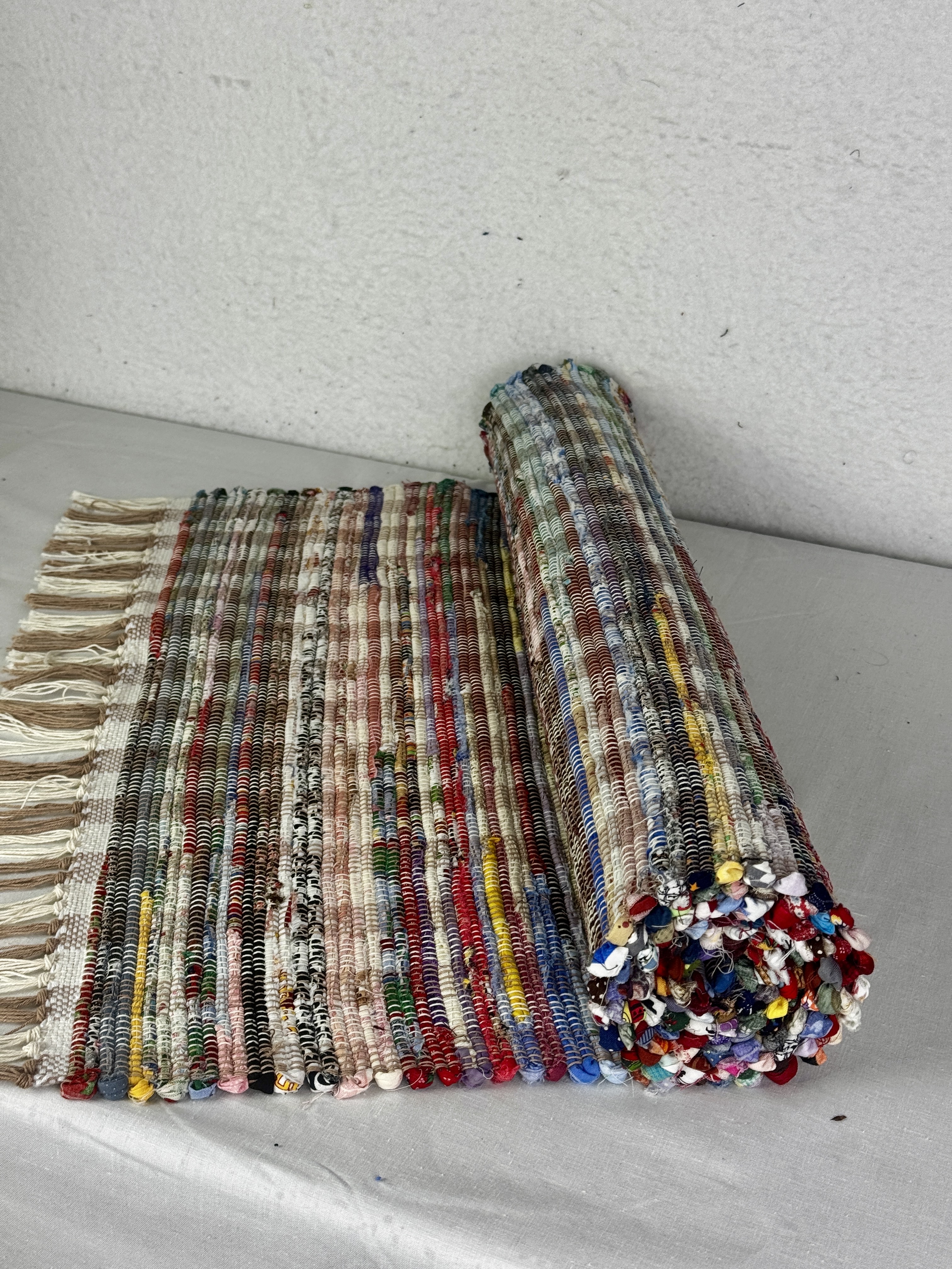 Discover the extraordinary world of recycling with my remarkable rugs. Crafted from once-beloved household textiles, these rugs breathe new life into forgotten fabrics. Each rug is a captivating tapestry of repurposed wonders, blending sweaters, socks, shirts, jeans, bedding, and beyond. Each rug lends its own uniqueness due to the blend of textures and colors.