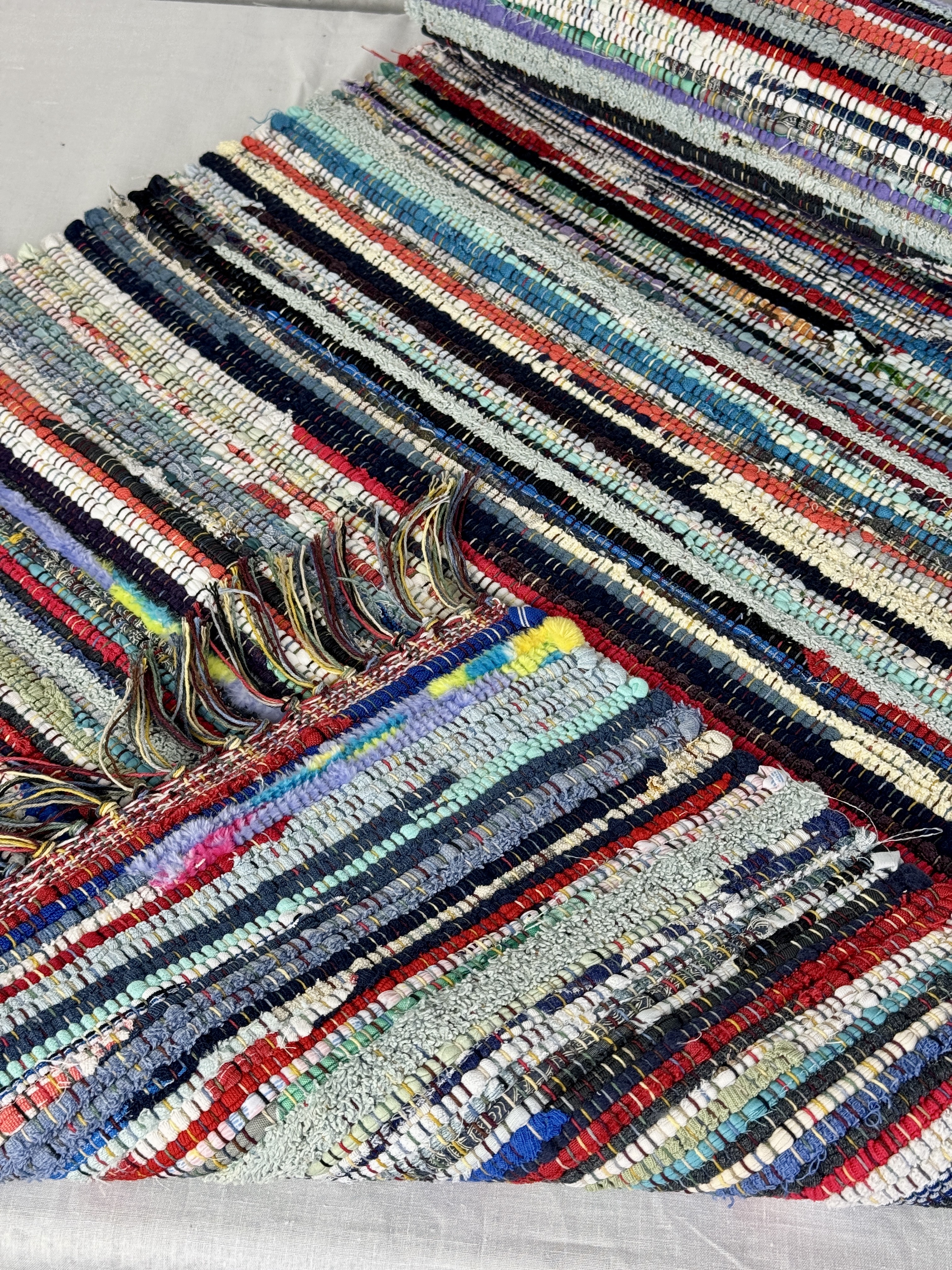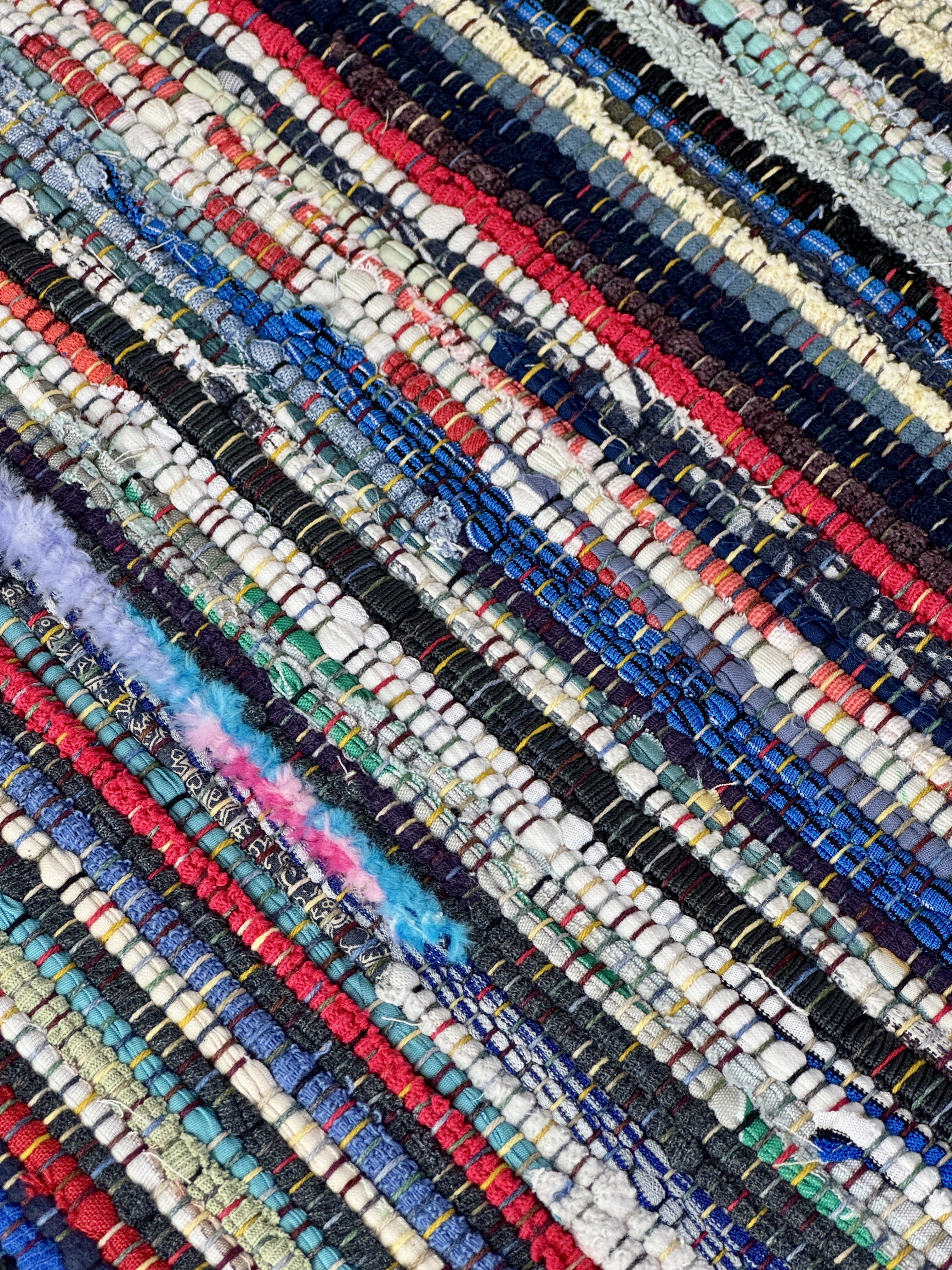 Discover the extraordinary world of recycling with my remarkable rugs. Crafted from once-beloved household textiles, these rugs breathe new life into forgotten fabrics. Each rug is a captivating tapestry of repurposed wonders, blending sweaters, socks, shirts, jeans, bedding, and beyond. Each rug lends its own uniqueness due to the blend of textures and colors.