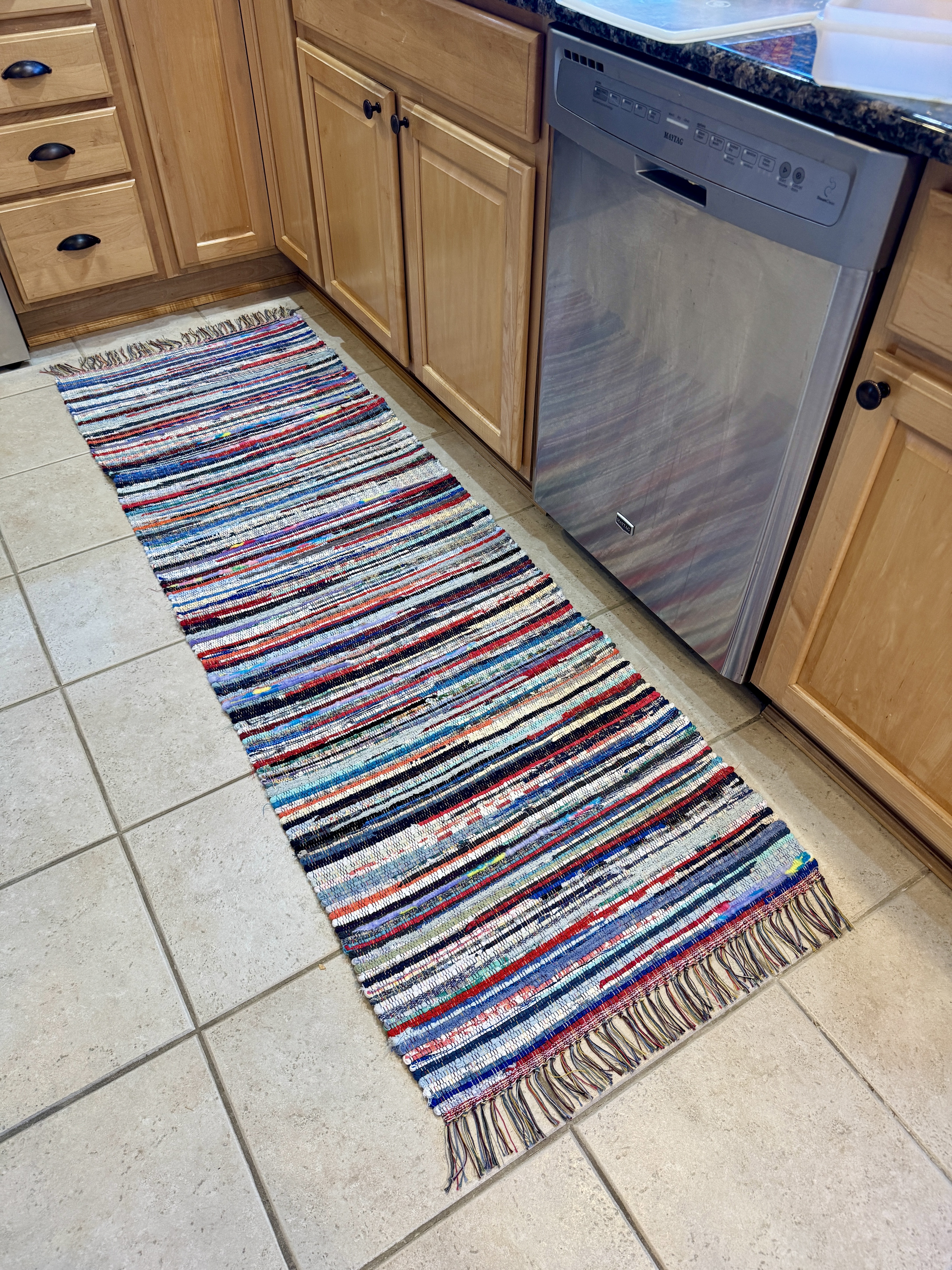 These days I call central Iowa home, and I carry on that family tradition by turning worn-out clothes and household textiles into handwoven rag rugs for 45+ years. Everything I make is crafted from upcycled materials—because I still believe what’s old can be made useful again.