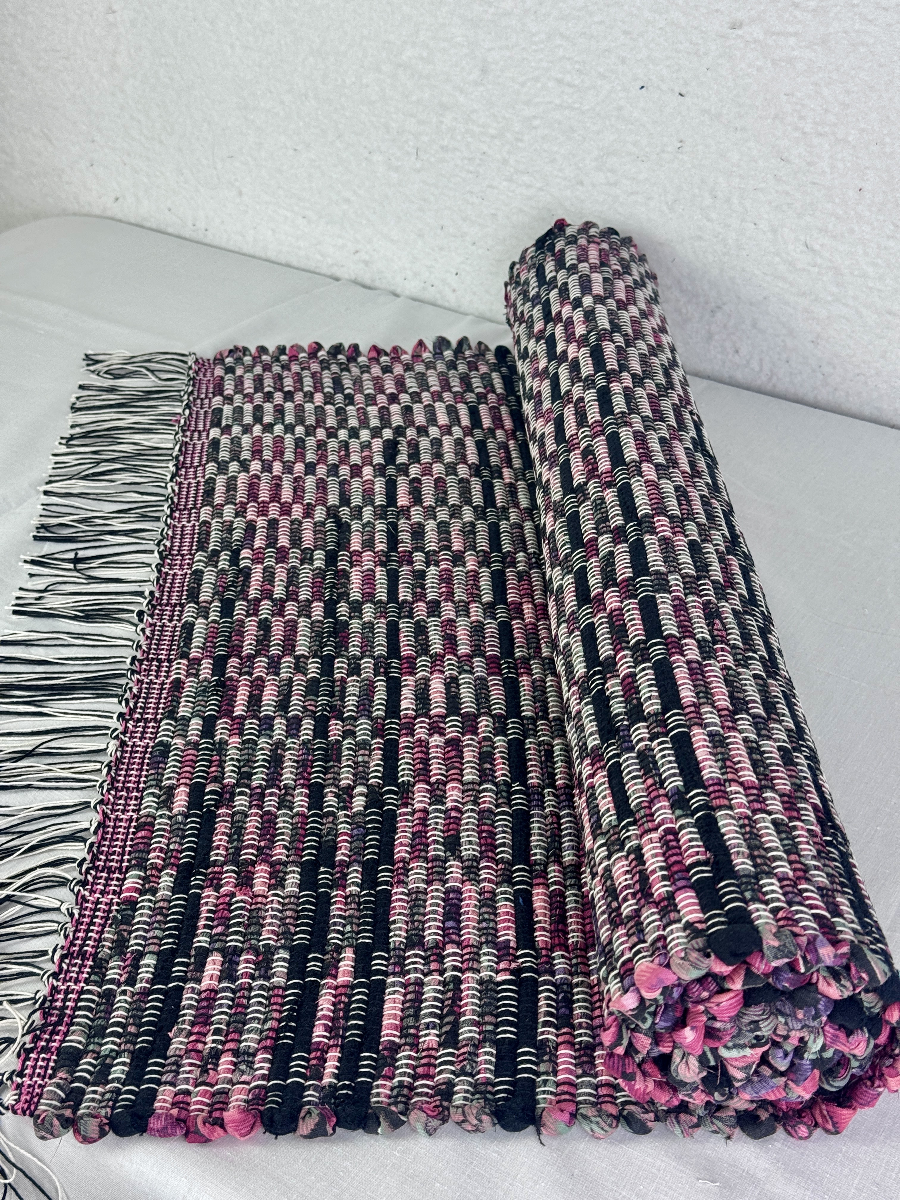 Pink and Black Handwoven Rag Rug 25" x 59"