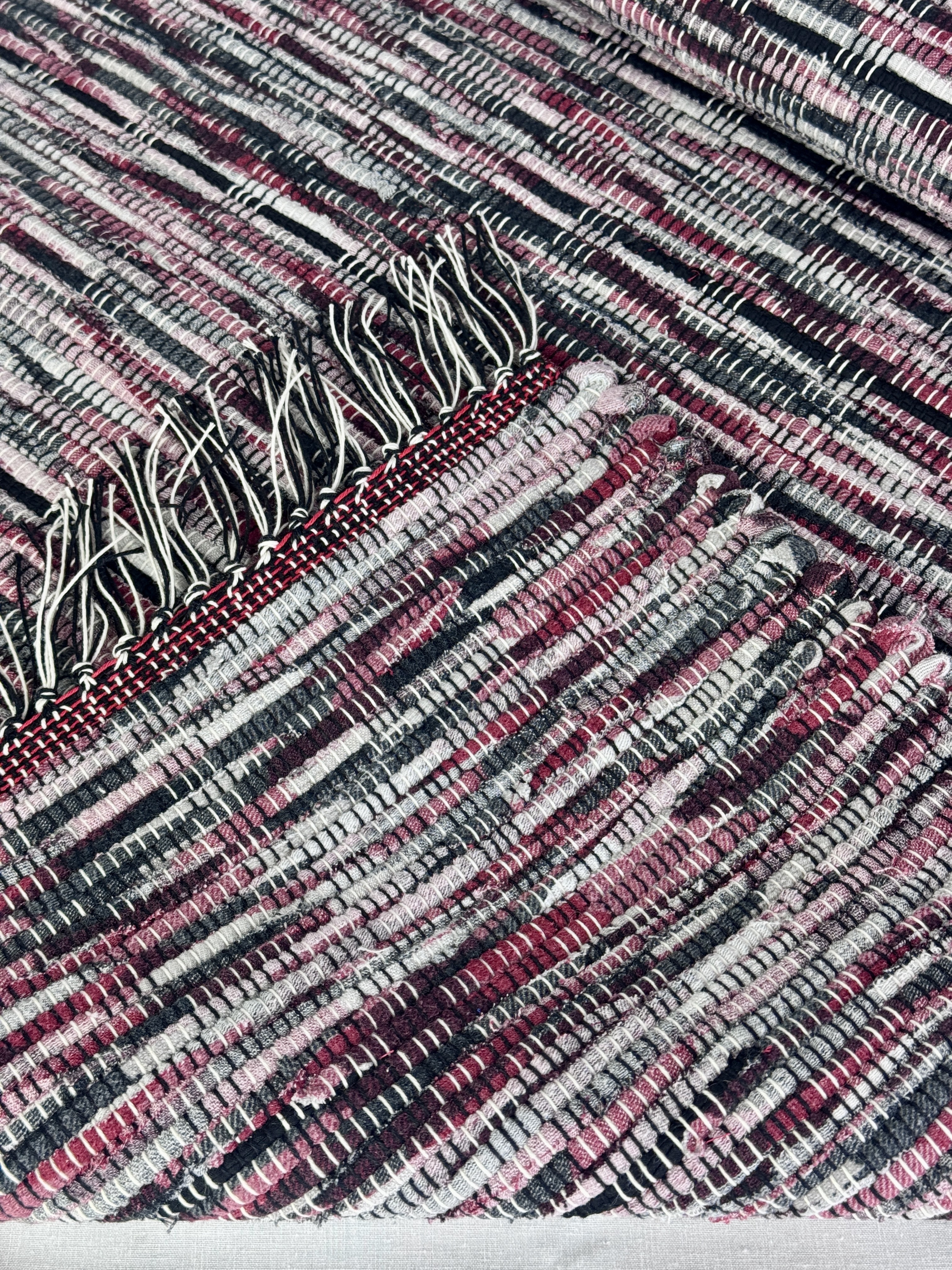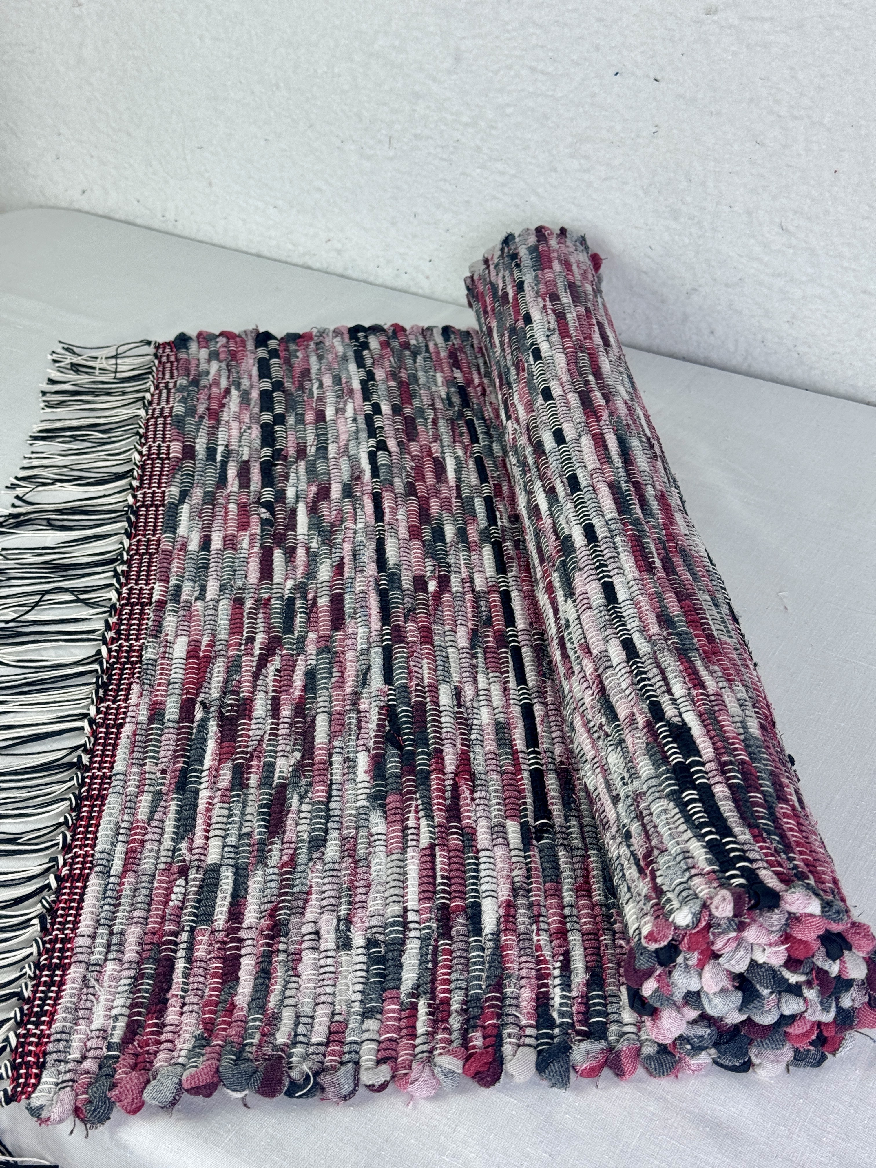 Every rug is meticulously handwoven on my trusty two-harness loom. I pour my passion and attention to detail into each weave, ensuring a quality that transcends trends. The impeccable straight edges and tightly woven strands are testaments to my dedication, while the variety of warp colors allows me to create pieces that complement any aesthetic, from modern minimalism to vintage charm.