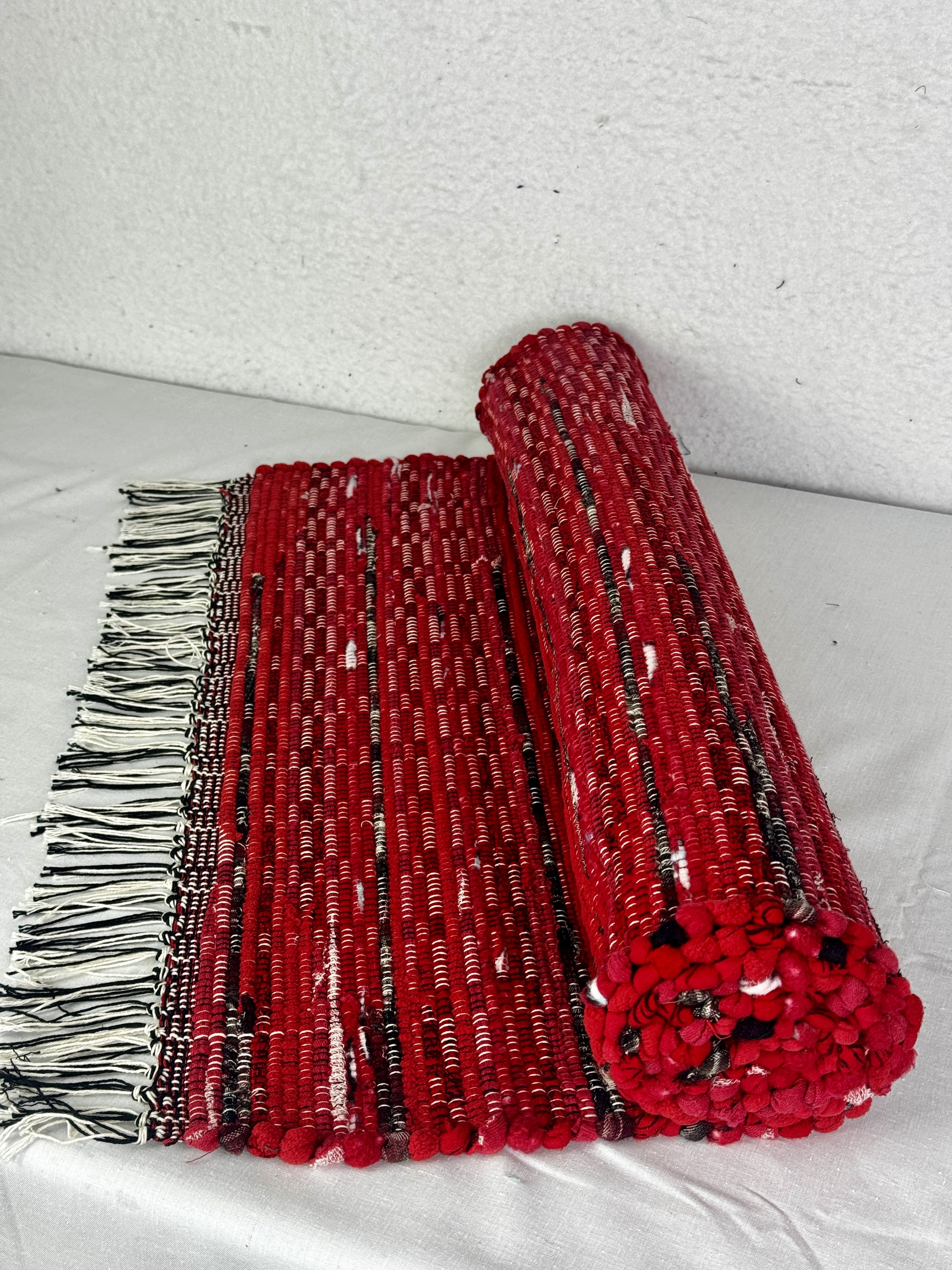 Every rug is meticulously handwoven on my trusty two-harness loom. I pour my passion and attention to detail into each weave, ensuring a quality that transcends trends. The impeccable straight edges and tightly woven strands are testaments to my dedication, while the variety of warp colors allows me to create pieces that complement any aesthetic, from modern minimalism to vintage charm.