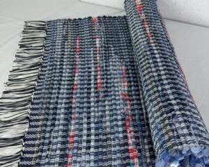 Denim w/Orange Accents Handwoven Rag Rug 25" x 42"