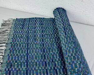 Navy and Green Handwoven Rag Rug 25" x 35"