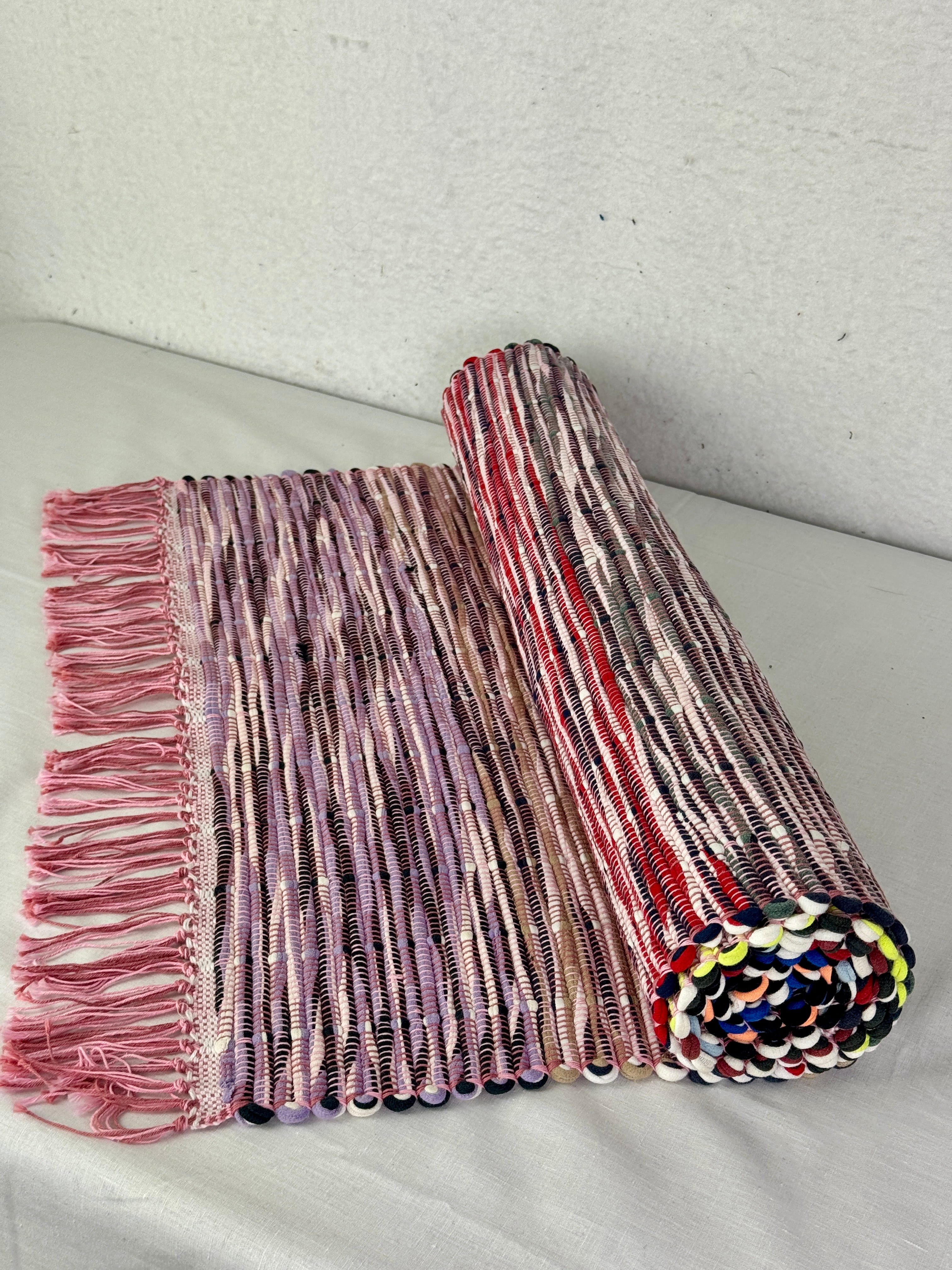 Every rug is meticulously handwoven on my trusty two-harness loom. I pour my passion and attention to detail into each weave, ensuring a quality that transcends trends. The impeccable straight edges and tightly woven strands are testaments to my dedication, while the variety of warp colors allows me to create pieces that complement any aesthetic, from modern minimalism to vintage charm.
