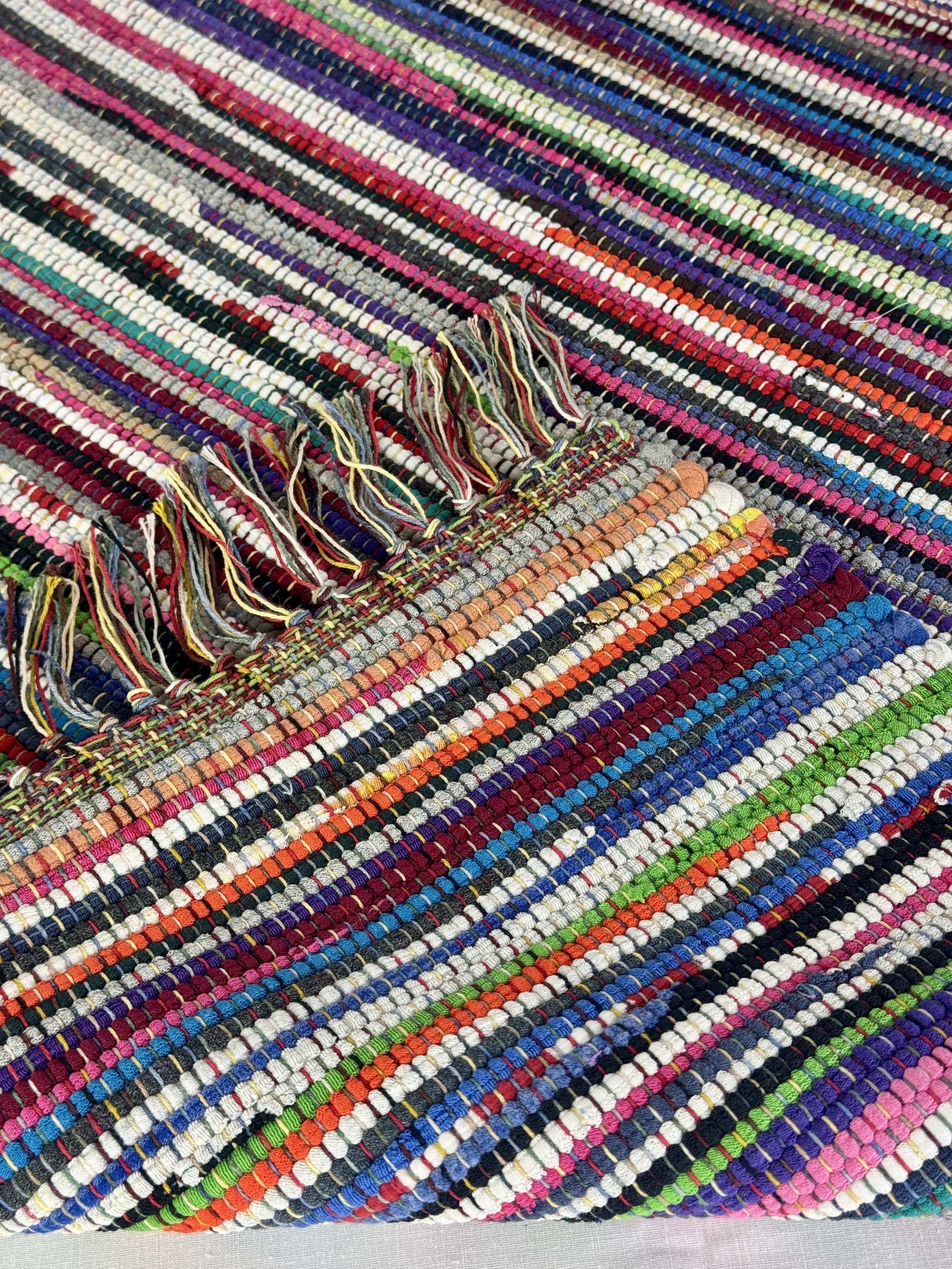 Every rug is meticulously handwoven on my trusty two-harness loom. I pour my passion and attention to detail into each weave, ensuring a quality that transcends trends. The impeccable straight edges and tightly woven strands are testaments to my dedication, while the variety of warp colors allows me to create pieces that complement any aesthetic, from modern minimalism to vintage charm.