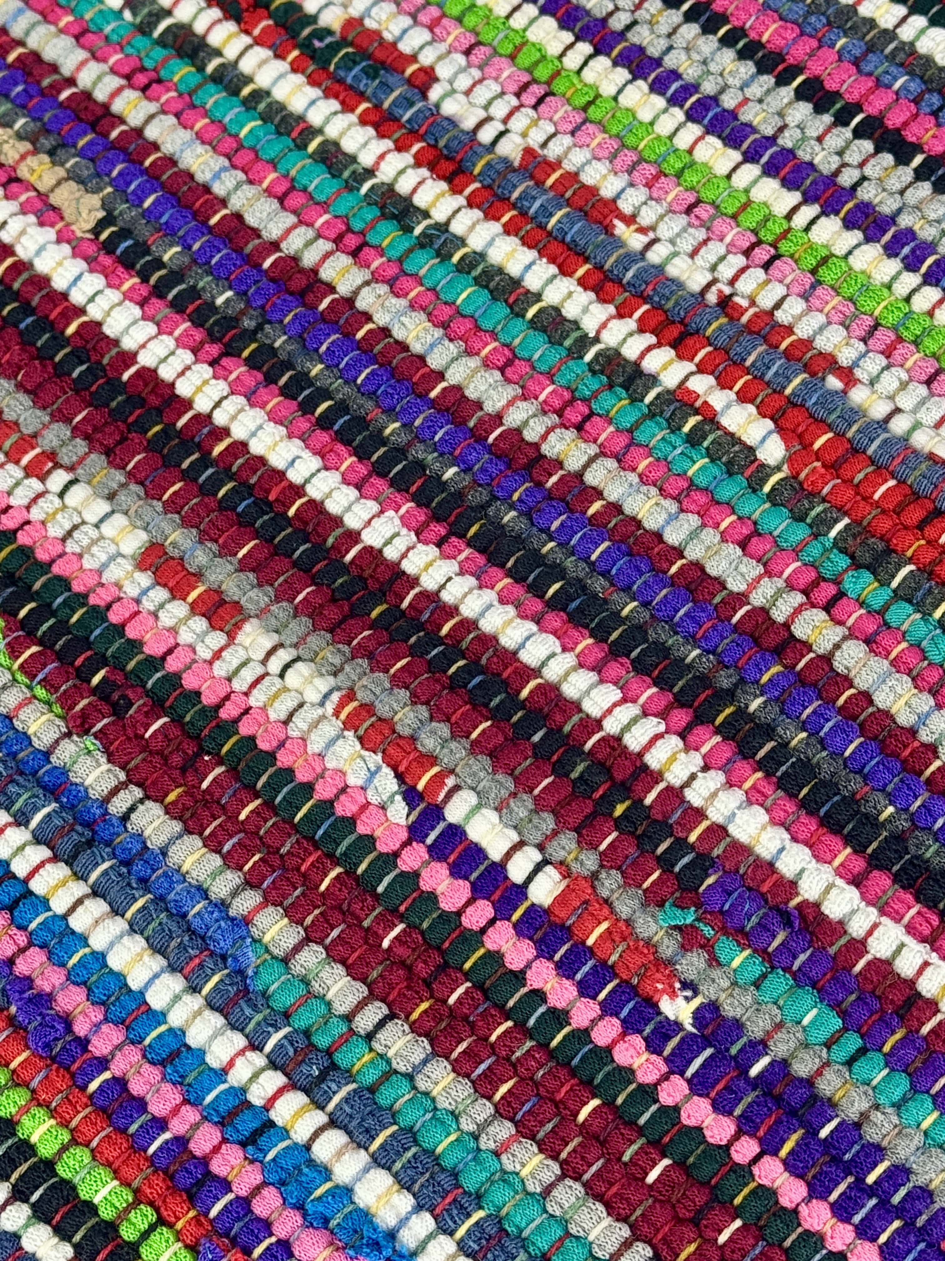 Discover the extraordinary world of recycling with my remarkable rugs. Crafted from once-beloved household textiles, these rugs breathe new life into forgotten fabrics. Each rug is a captivating tapestry of repurposed wonders, blending sweaters, socks, shirts, jeans, bedding, and beyond. Each rug lends its own uniqueness due to the blend of textures and colors.