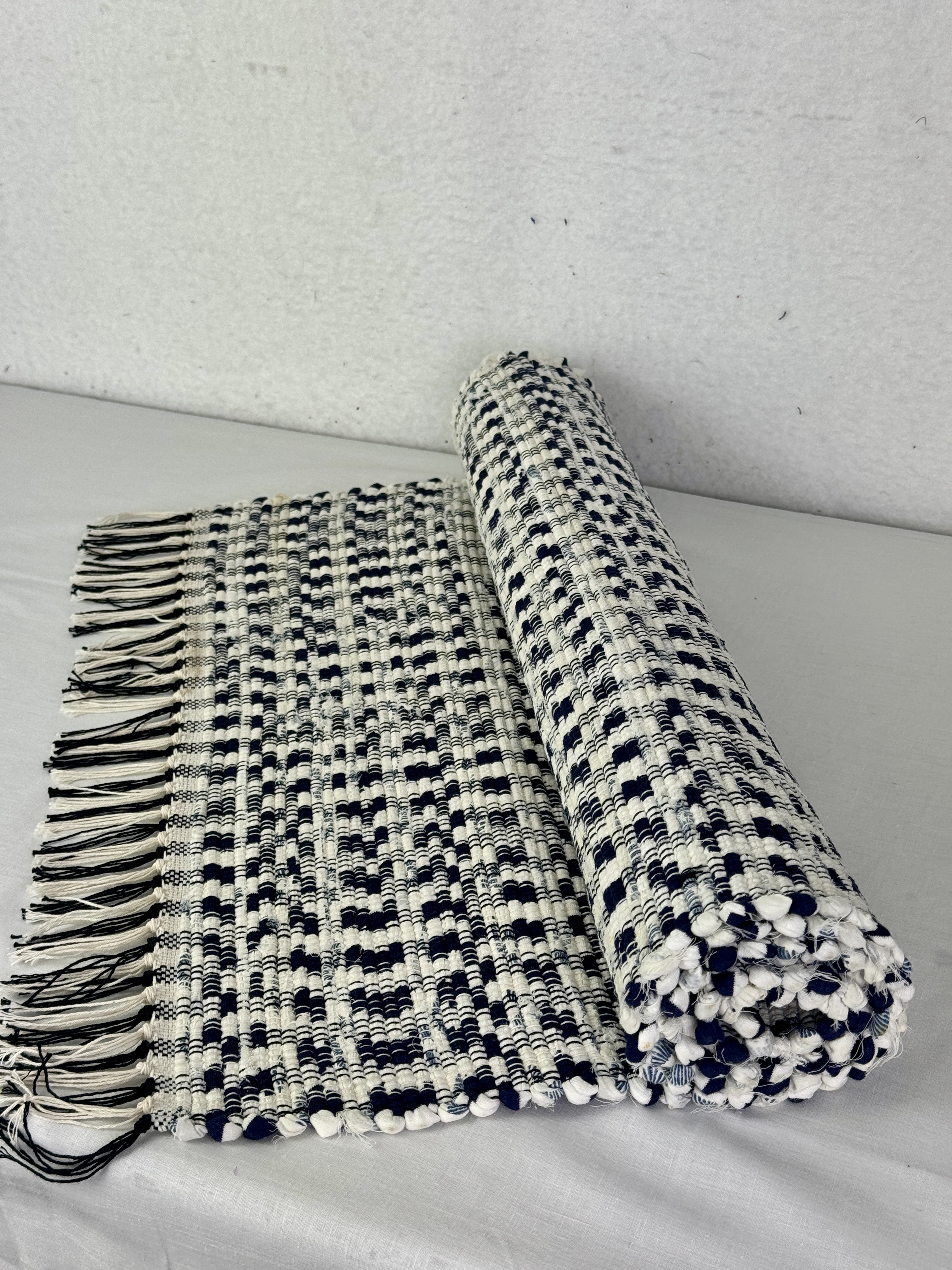 Every rug is meticulously handwoven on my trusty two-harness loom. I pour my passion and attention to detail into each weave, ensuring a quality that transcends trends. The impeccable straight edges and tightly woven strands are testaments to my dedication, while the variety of warp colors allows me to create pieces that complement any aesthetic, from modern minimalism to vintage charm.