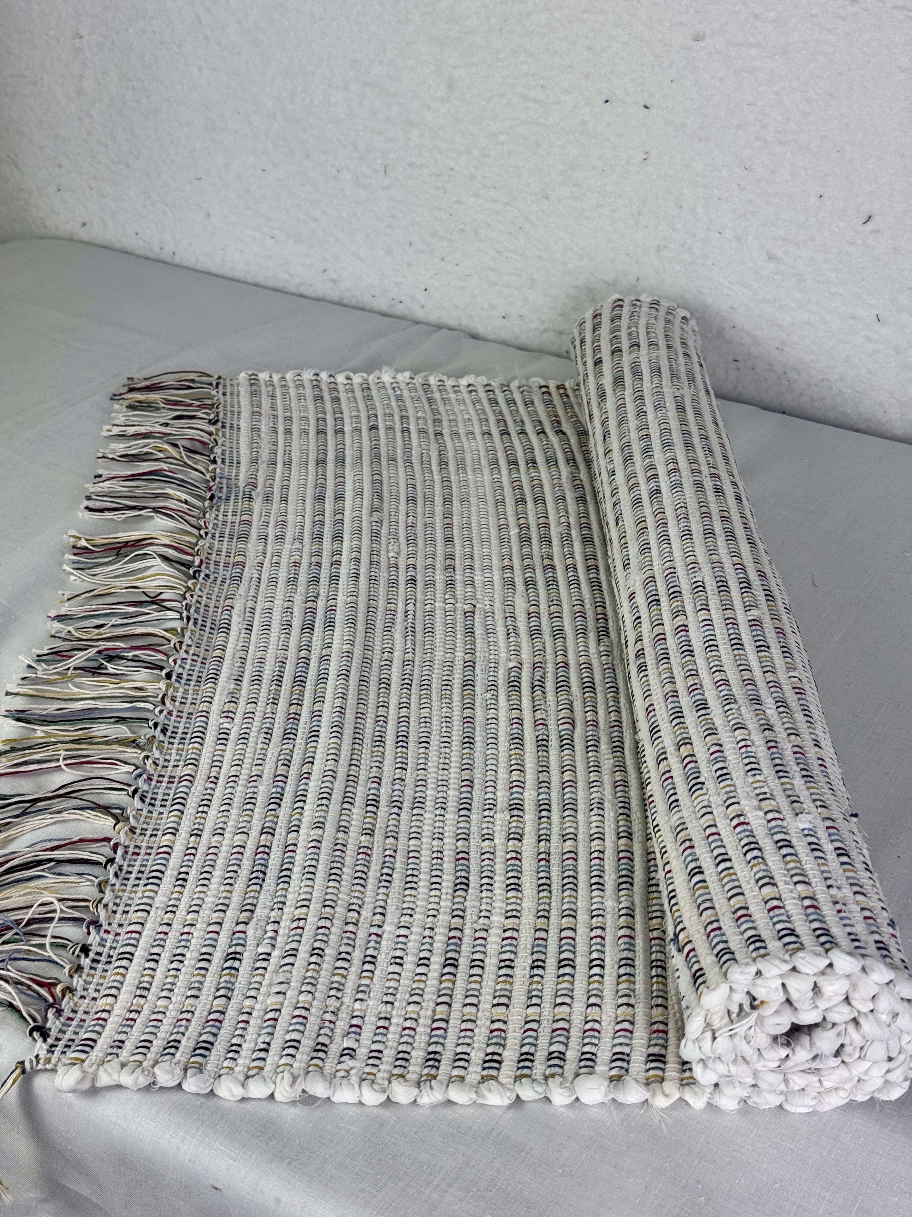 Every rug is meticulously handwoven on my trusty two-harness loom. I pour my passion and attention to detail into each weave, ensuring a quality that transcends trends. The impeccable straight edges and tightly woven strands are testaments to my dedication, while the variety of warp colors allows me to create pieces that complement any aesthetic, from modern minimalism to vintage charm.