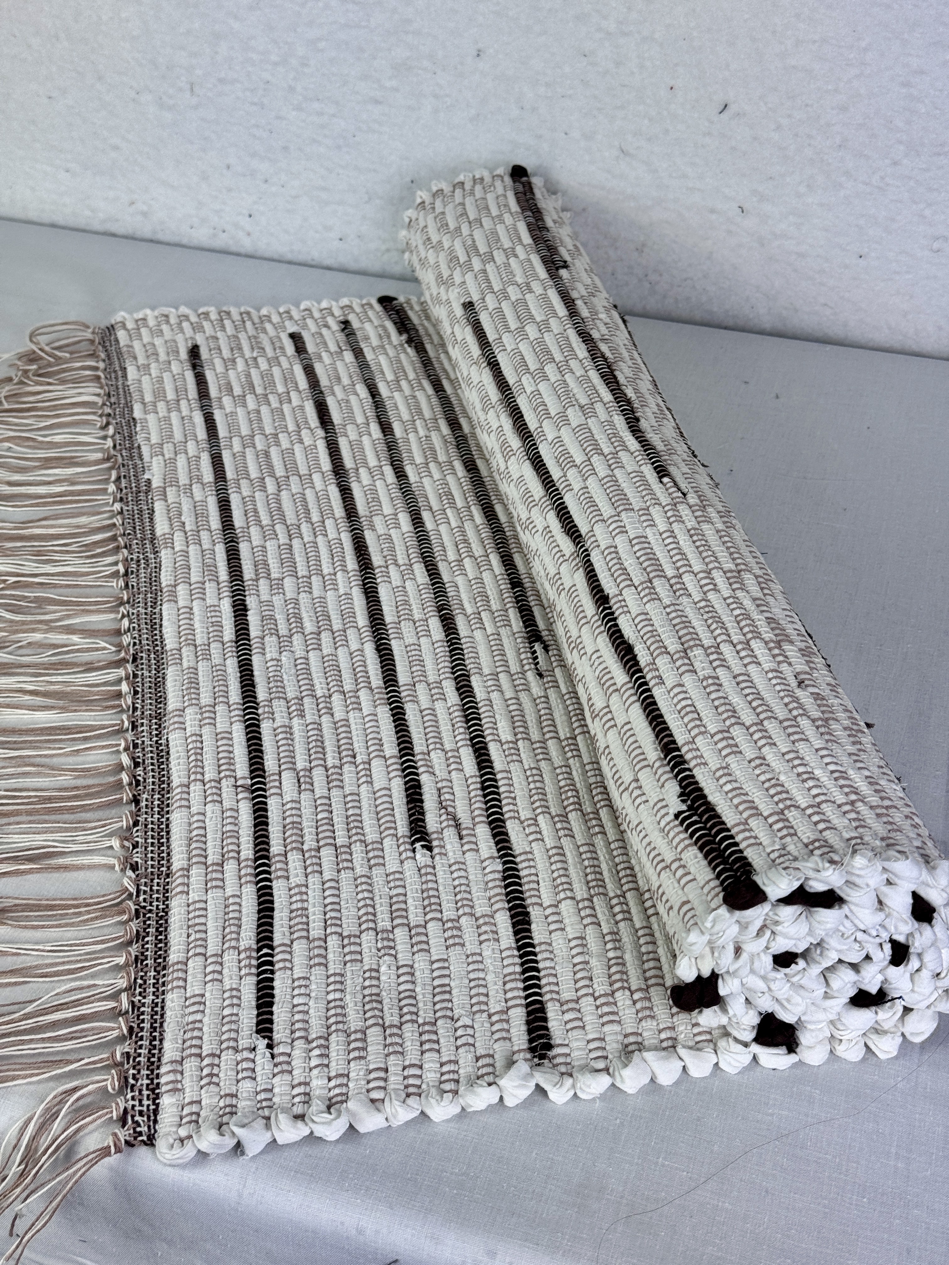 Every rug is meticulously handwoven on my trusty two-harness loom. I pour my passion and attention to detail into each weave, ensuring a quality that transcends trends. The impeccable straight edges and tightly woven strands are testaments to my dedication, while the variety of warp colors allows me to create pieces that complement any aesthetic, from modern minimalism to vintage charm.
