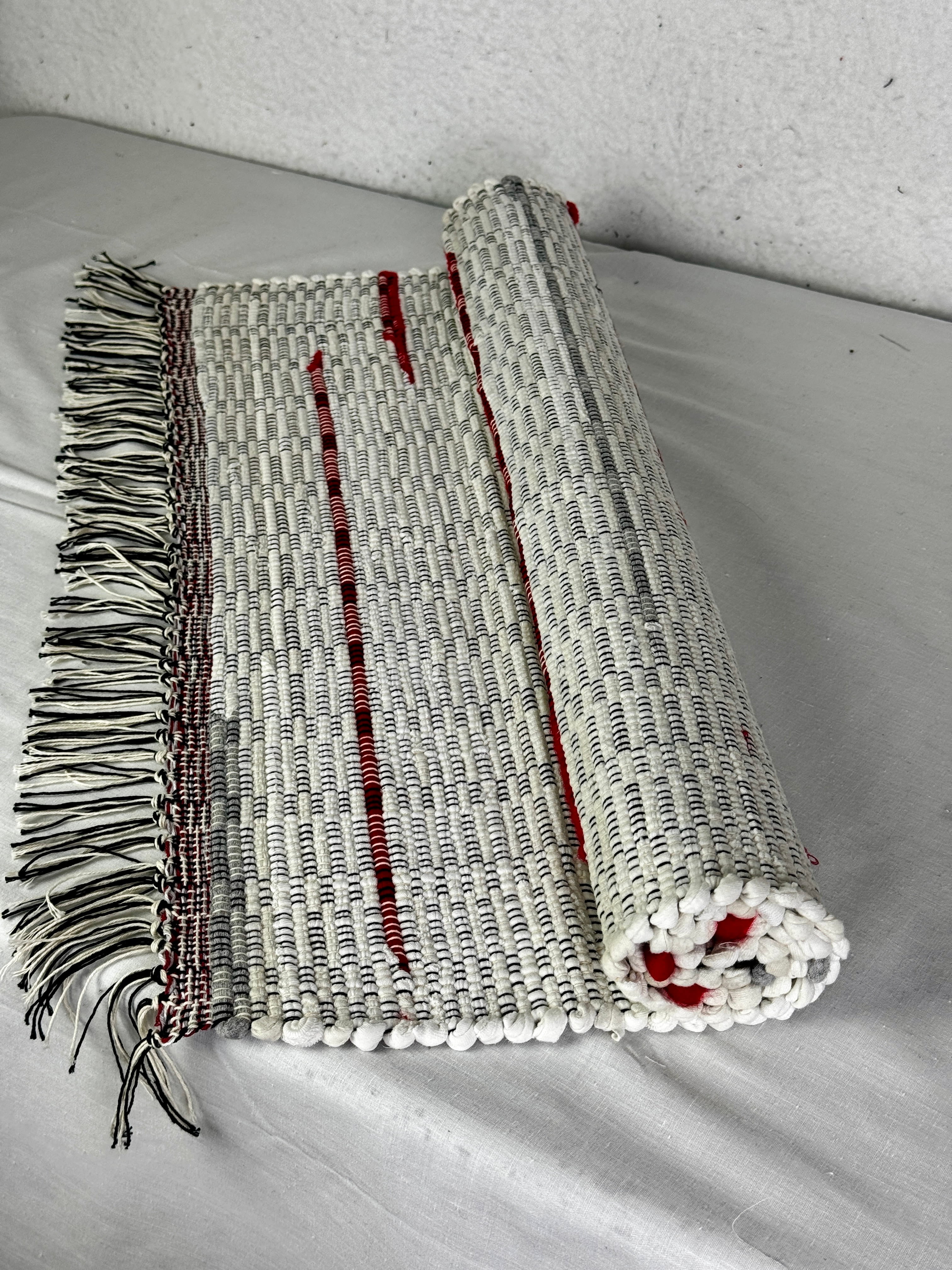 Every rug is meticulously handwoven on my trusty two-harness loom. I pour my passion and attention to detail into each weave, ensuring a quality that transcends trends. The impeccable straight edges and tightly woven strands are testaments to my dedication, while the variety of warp colors allows me to create pieces that complement any aesthetic, from modern minimalism to vintage charm.